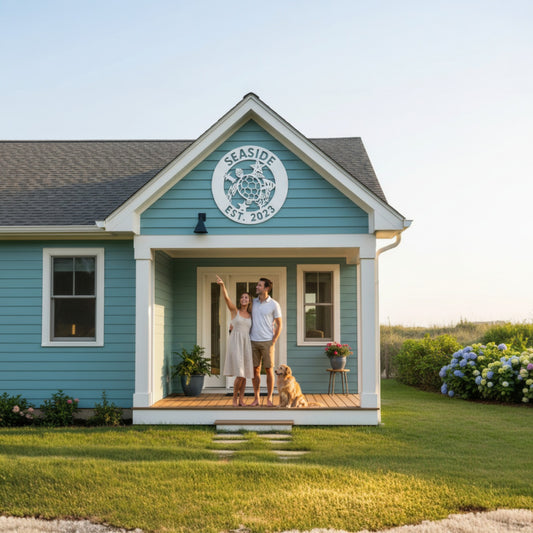 Custom Coastal Turtle Sign | Personalized Beach House Wall Decor | Outdoor PVC Nautical Sign | Ocean Home Exterior Sign | Established Date Plaque
