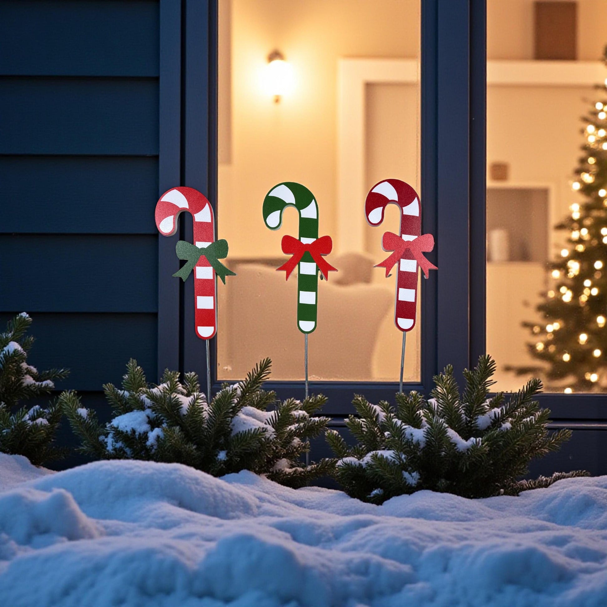 candy cane yard stake, pvc christmas decor, outdoor xmas stakes, holiday yard art, walkway decorations, christmas lawn decor, red green candy canes, winter yard stakes, garden candy cane, christmas path stakes, weatherproof decor, lawn ornament set, festive outdoor decor
