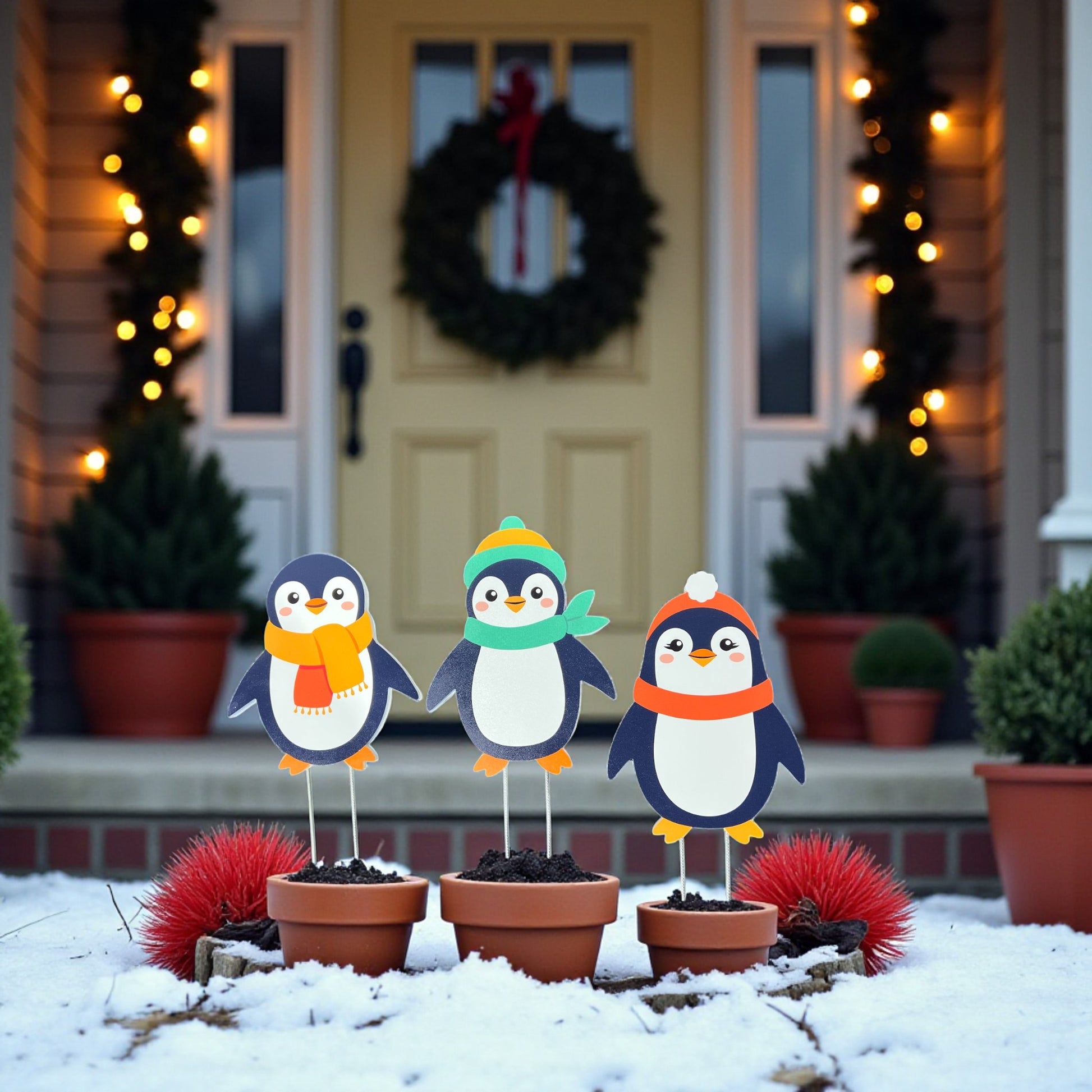 Christmas Penguins Yard Signs Set of 3 - Outdoor PVC Holiday Decorations with Stakes – Fun Yard Décor