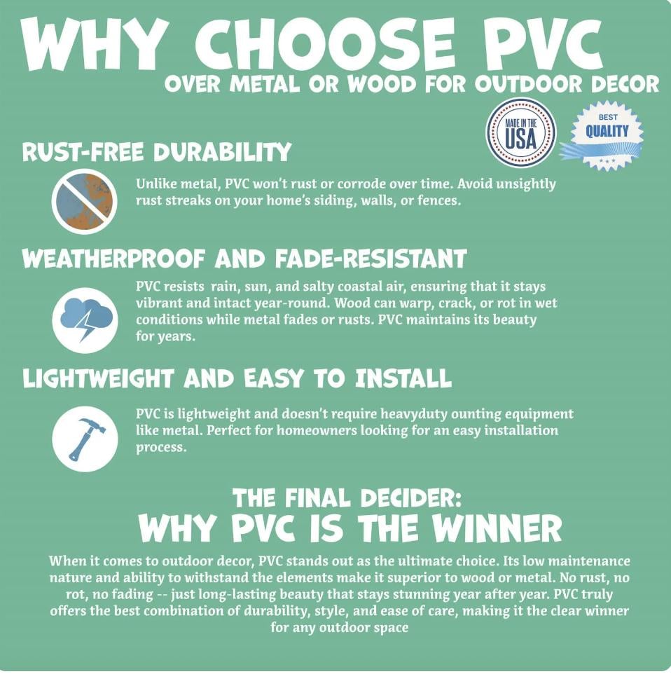 Outdoor safe & weatherproof - won't warp, crack, or fade in sun, rain, or salt air