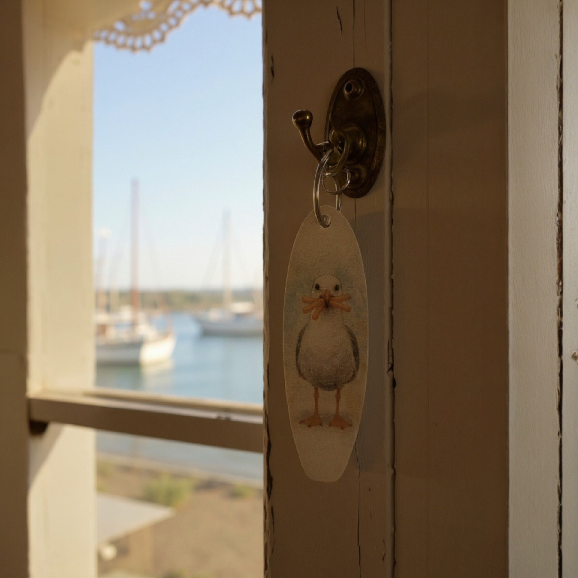 Playful Beach Design - Each keychain features a cheeky seagull with french fries in its beak, capturing the funny reality of boardwalk life where no snack is safe! A lighthearted and unique design that's sure to make any beach lover smile.