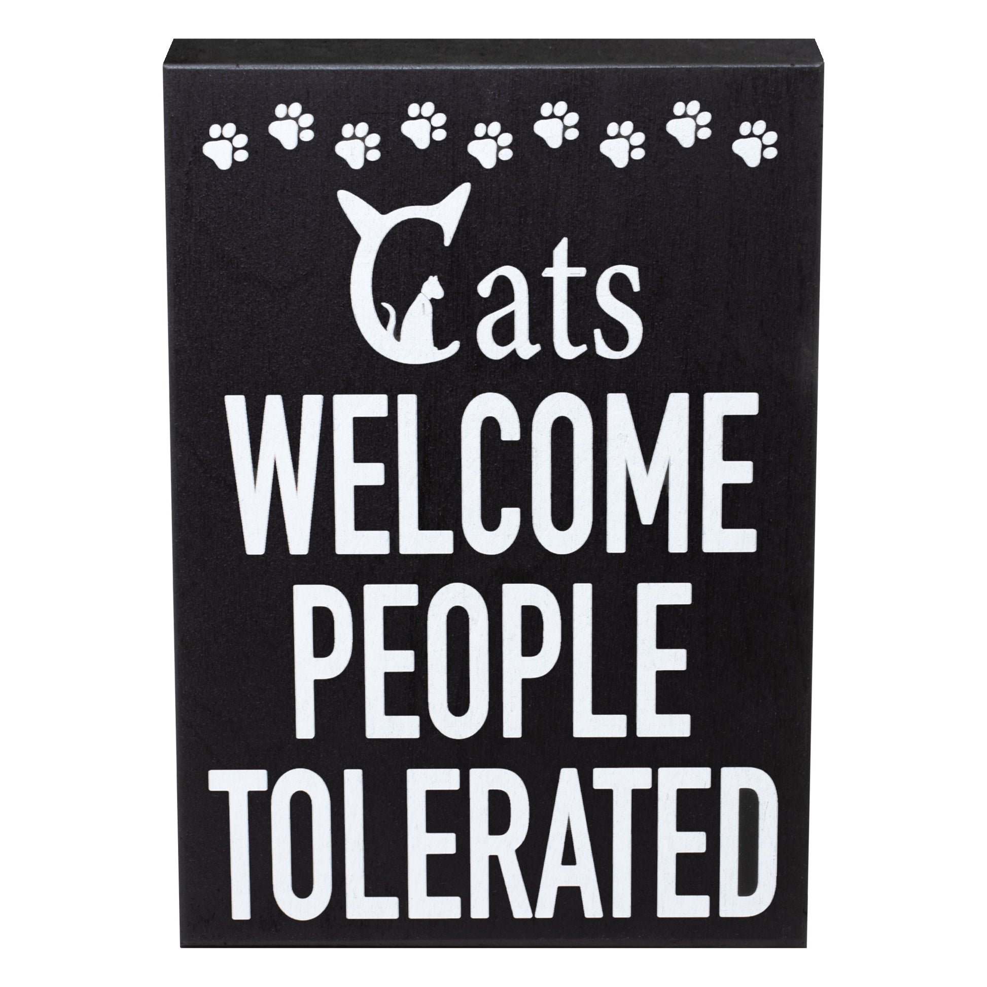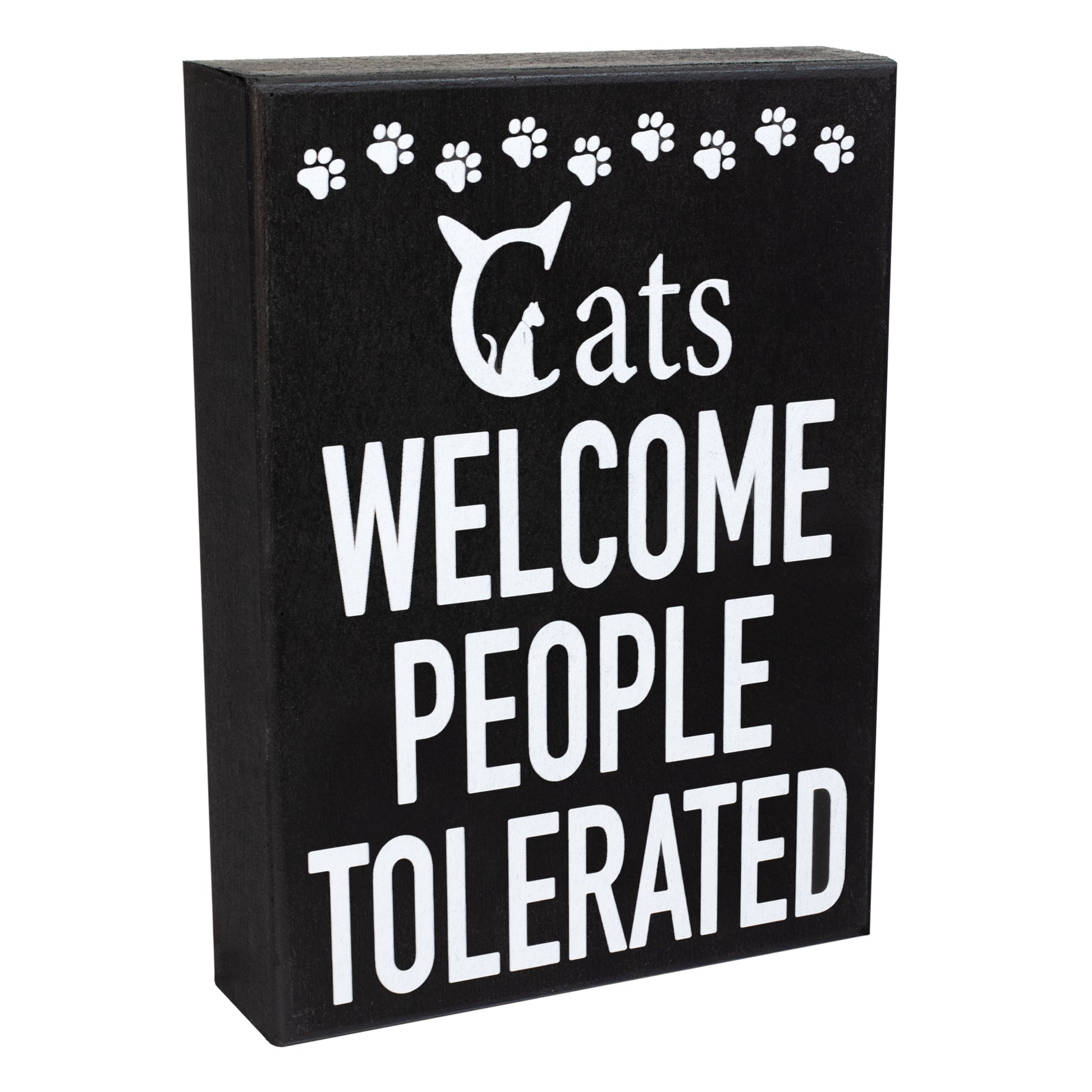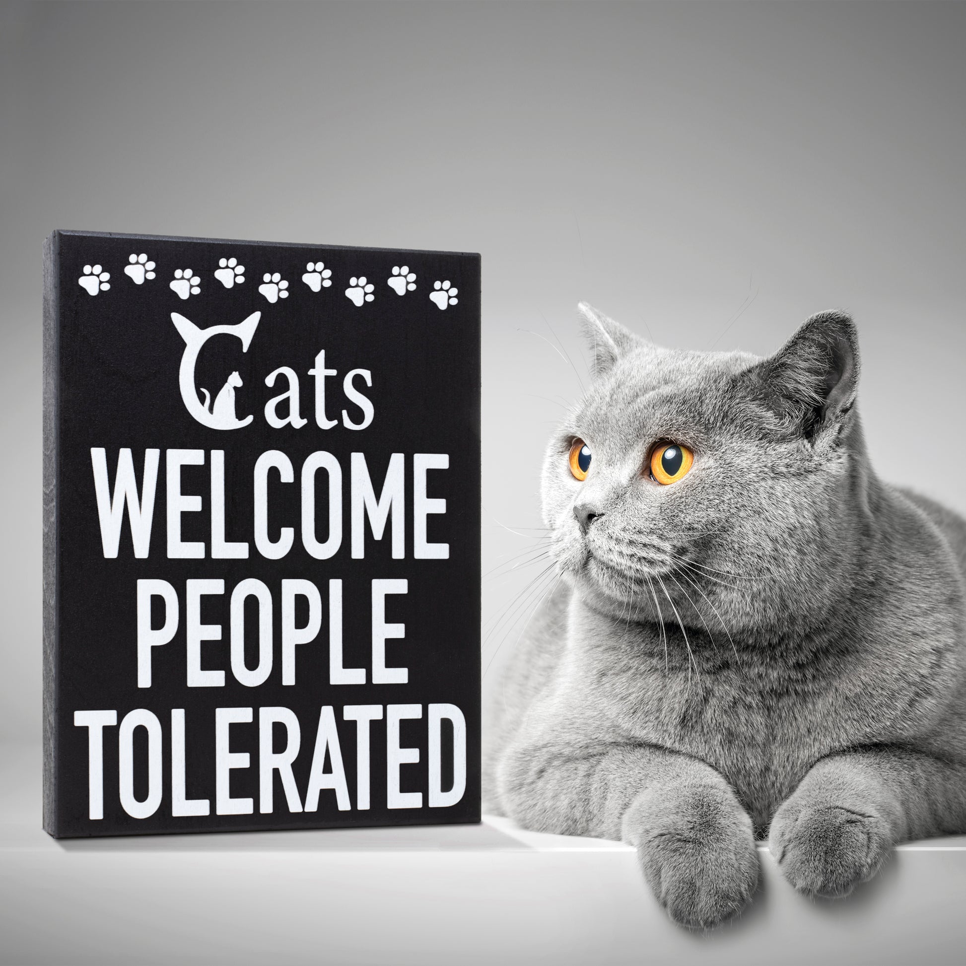 JennyGems Cats Welcome People Tolerated Sign – Funny Cat Lover Gift for Women and Men Rustic Wooden Wall Shelf Decor - Cat Wall Art for Home Farmhouse and Christmas Gift