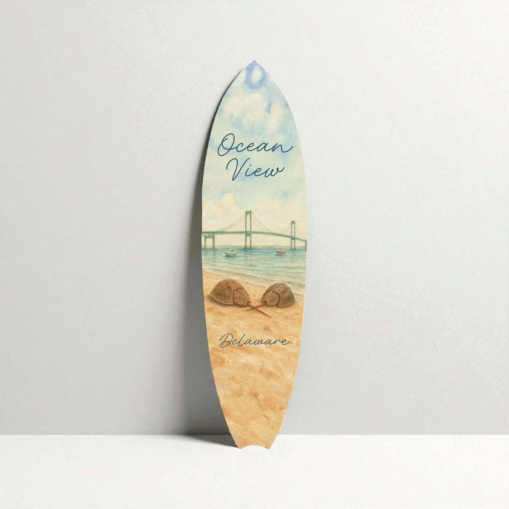 Celebrate the laid-back charm of Ocean View, Delaware with this PVC Surfboard Wall Art, designed to bring a touch of coastal style to any space. Whether you live at the beach, vacation there, or just love Delaware's shore towns, this surfboard makes a bold and beautiful statement.