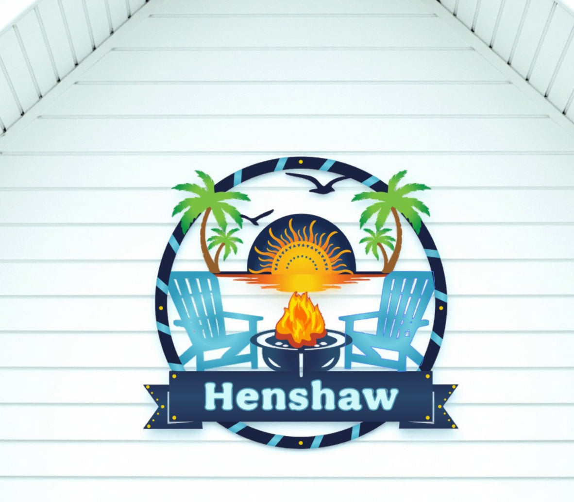 Outdoor Beach Vibes Sign – Round Premium PVC Beach House Decor with Palm Trees & Fire Pit – Weatherproof Coastal Wall Art for Home, Pool Area, Shed