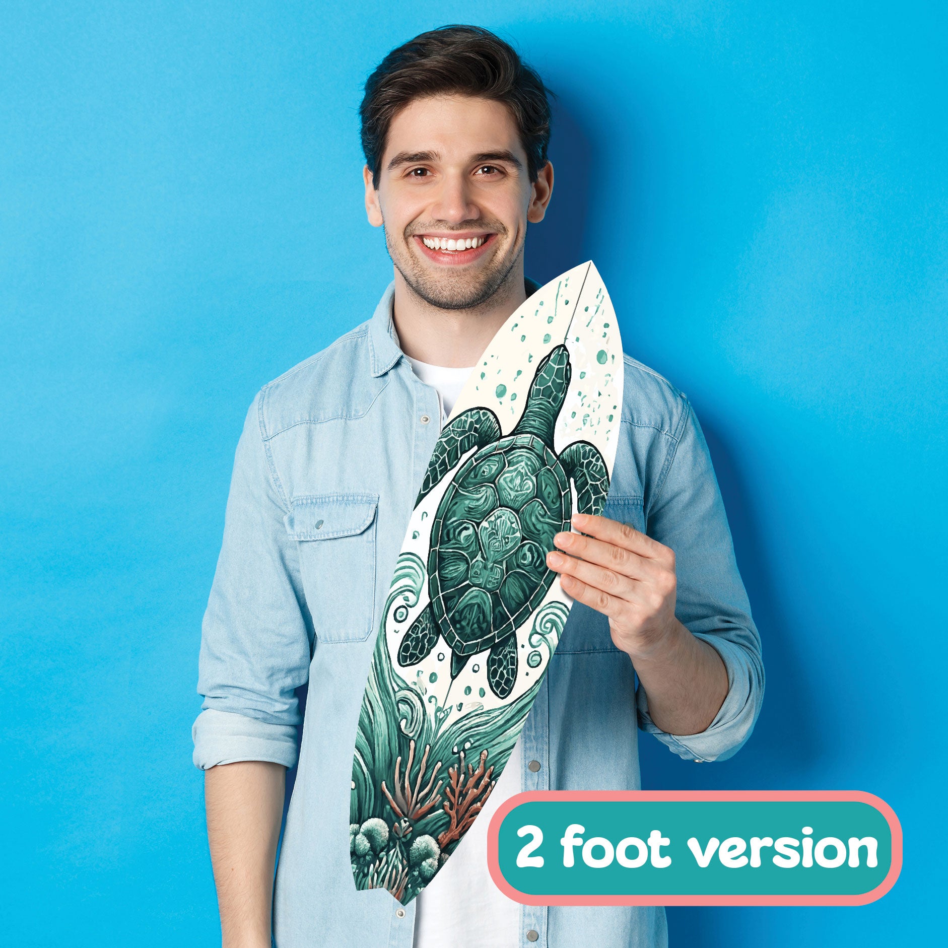 The intricate turtle design paired with vibrant, ocean-inspired colors makes this surfboard art a true conversation starter. Available in 2-foot, 3-foot, 4-foot, and 5-foot lengths, it's versatile enough to fit any space. Whether displayed in your garden, living room, porch, or by the pool, this piece adds a touch of tropical charm wherever it's placed.
